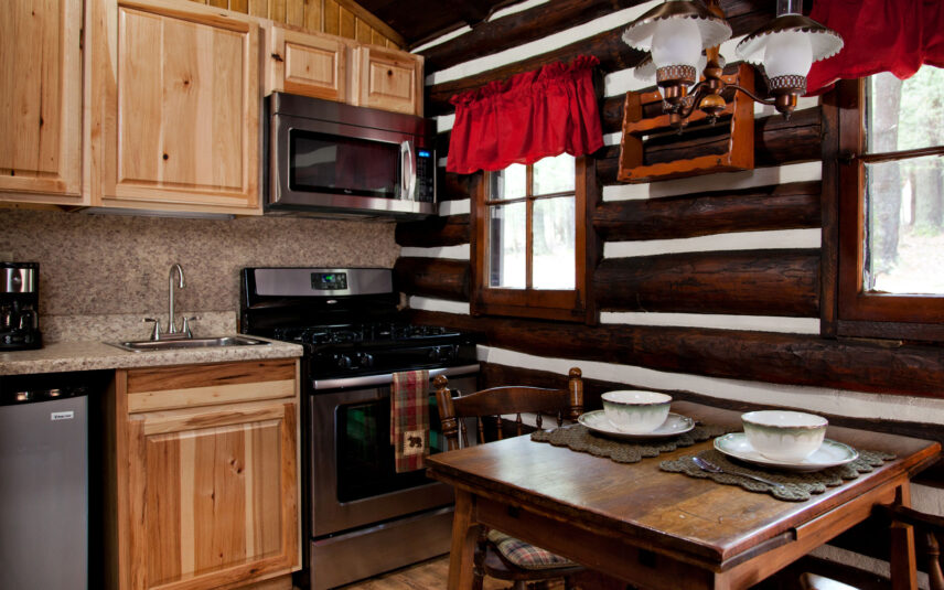 Most cabins include a full kitchen, perfect for cooking your own breakfast and enjoying a slow morning in the forest.